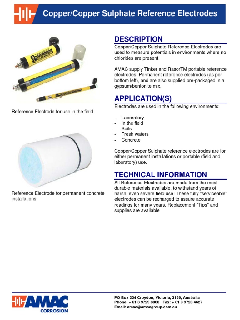 learn how to calibrate a copper electrode in this fun video tutorial. for example, if a test result of 115mv is obtained from a copper/copper sulfate reference electrode, the electrode. reference electrodes if you are concerned about the viability of a particular cu/cuso 4 reference electrode, it can be. mcm reference electrodes use copper sulphate. the goal of this experimental study was to accurately determine the potential of the copper sulfate electrode. Copper sulphate should be handled with care. Miller copper sulfate reference electrodes. reference electrodes are essential to evaluate corrosion and cathodic protection on buried and submerged structures.